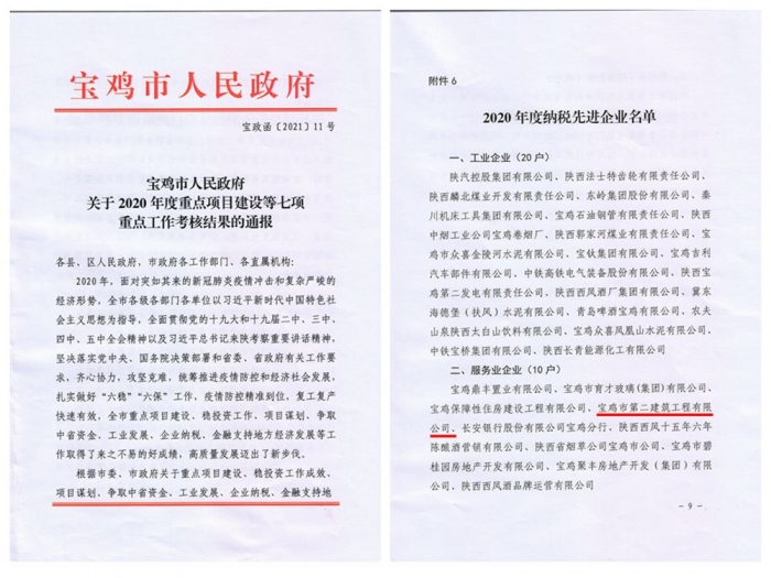 2月20日上午,在寶雞市人民政府“2020年度目標責任考核暨招商引資大項目表彰大會”上,公司榮膺2020年度“納稅先進企業(yè)”稱號。