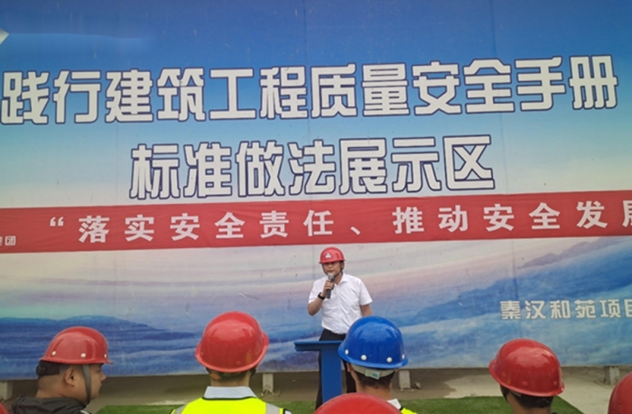 秦漢和苑項目經理申宏亮對項目安全管理作了經驗交流并對安全生產做出了鄭重承諾。他提到,現(xiàn)場安全生產不光要明確目標、突出重點,更要樹立大局意識,認清形勢、狠抓落實。只有把安全生產工作做細做好、落到實處,才能創(chuàng)造一個安全、有序、和諧的生產環(huán)境。
