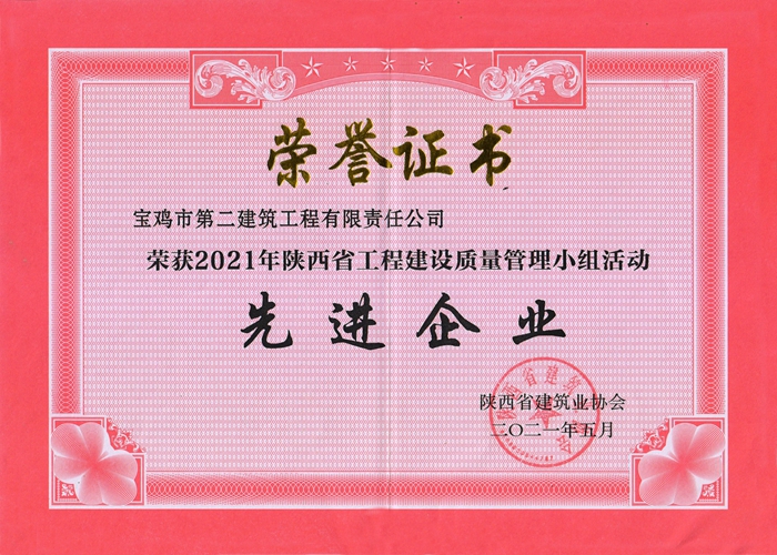 2021年陜西省工程建設質量管理小組活動先進企業(yè)